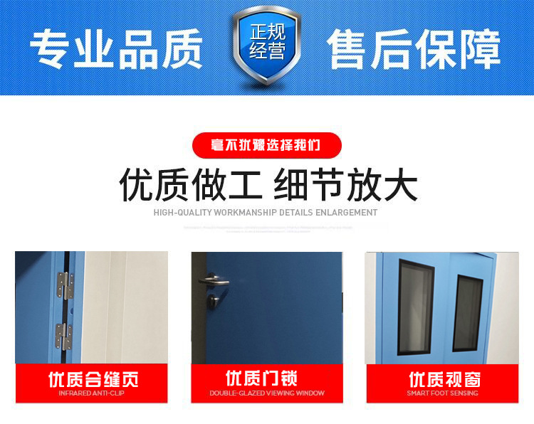 凈化門材質(zhì):冷板 鍍鋅板 鋁板 門框1.2-1.5 門板 0.8-1.0 mm, 門板采用優(yōu)質(zhì)電解鋼板制作,